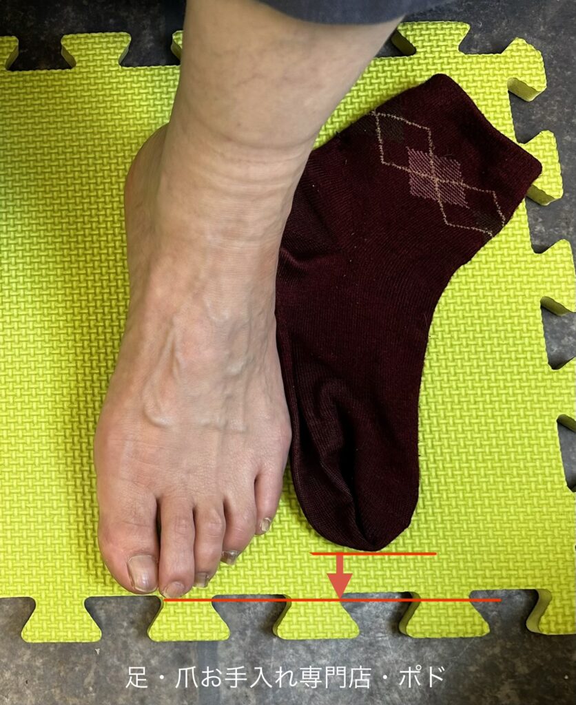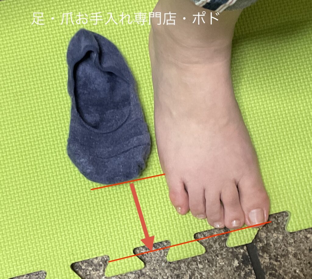 足の長さと靴下の長さを比べると靴下のサイズが少し短いですね。