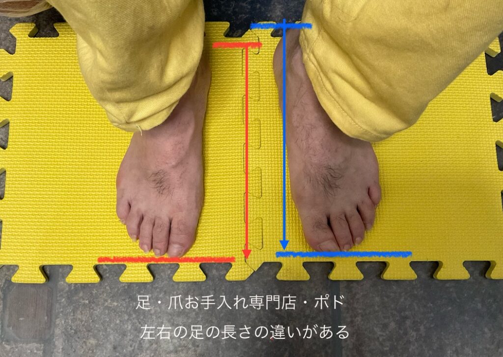 靴の爪先と足の爪先